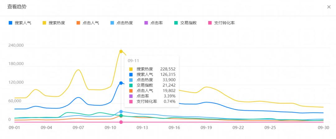 生意参谋官网数据也显示,在9月份,李佳琦直播间搜索热度、搜索人气的峰值均出现在9月11日,但当日也是李佳琦直播间支付转化率的低点,仅为0.74%。