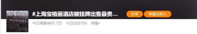 至此,谜底天下大白,“上海宝格丽酒店要卖了”迅速引发网友热议。