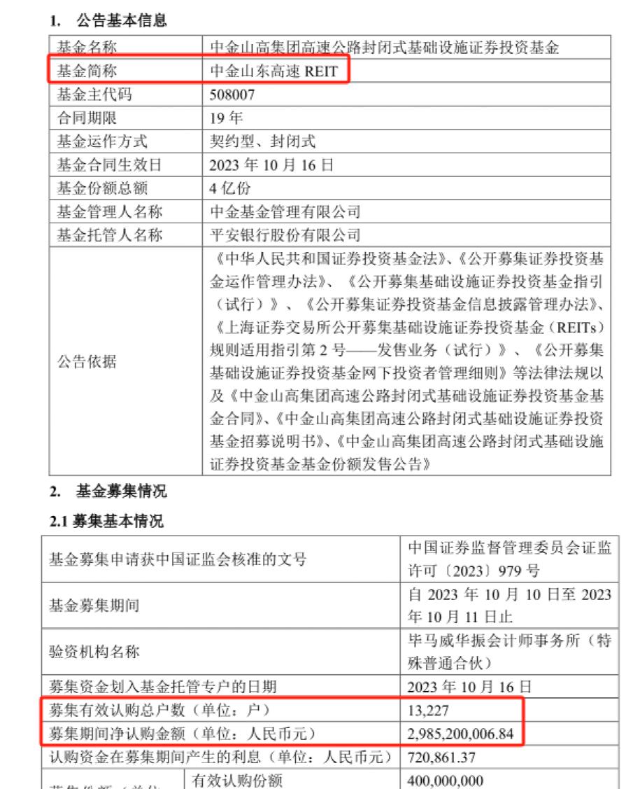首募规模29.85亿元,中金山东高速REIT宣告成立