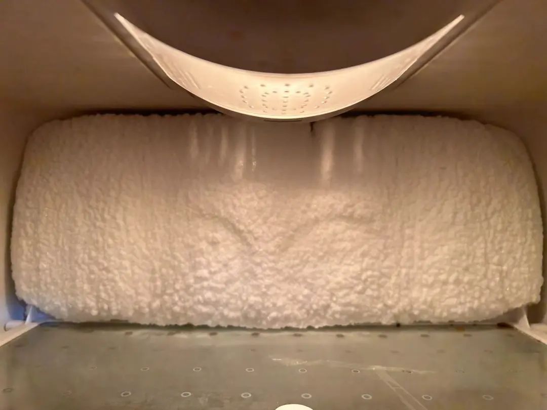 同时,冰箱里食物太多,也意味着有更多挥发出来的水分。这些水分会凝结在温度较低的蒸发器(冰箱内用于制冷的管道)上,然后变成厚厚的冰霜。