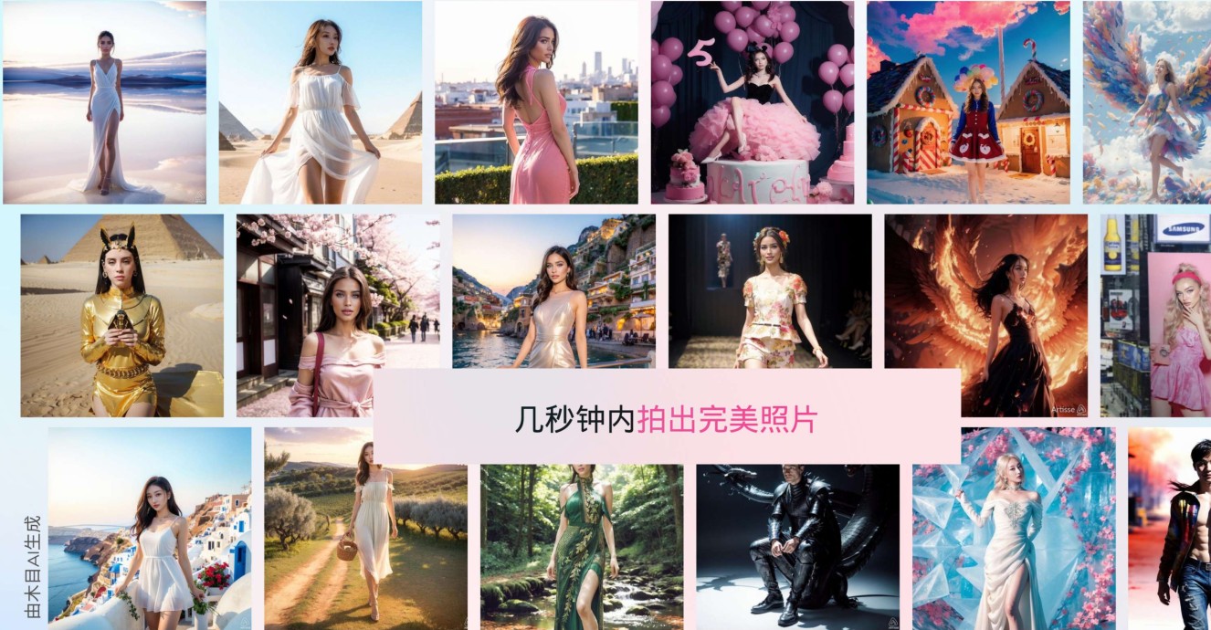 从后续所生成的照片来看,木目所生成的照片,色彩明显会较为鲜艳丰富,而很多照片也不只是人物的大头照。除了照片主角外,背后的背景、风景元素也相当多元。