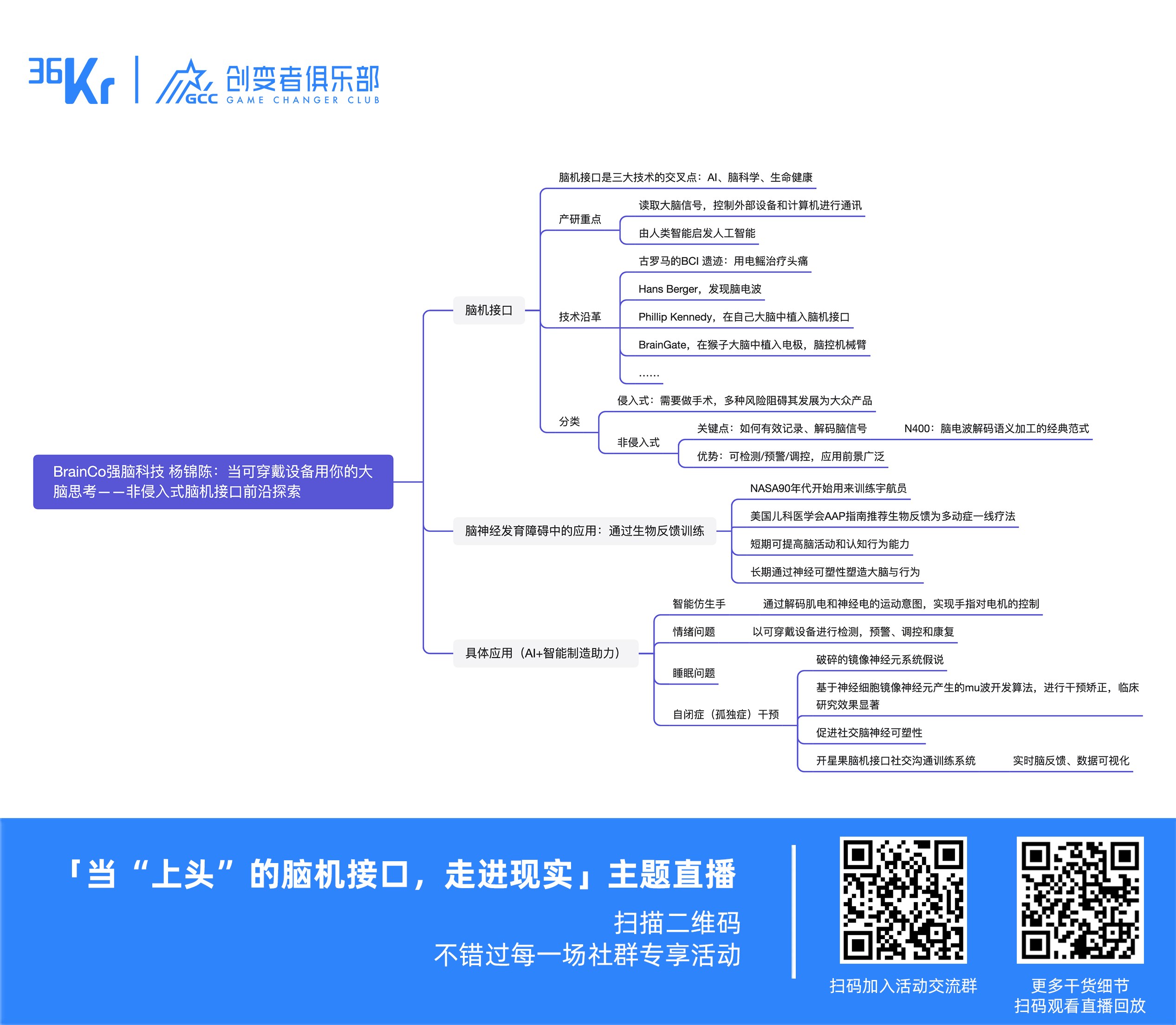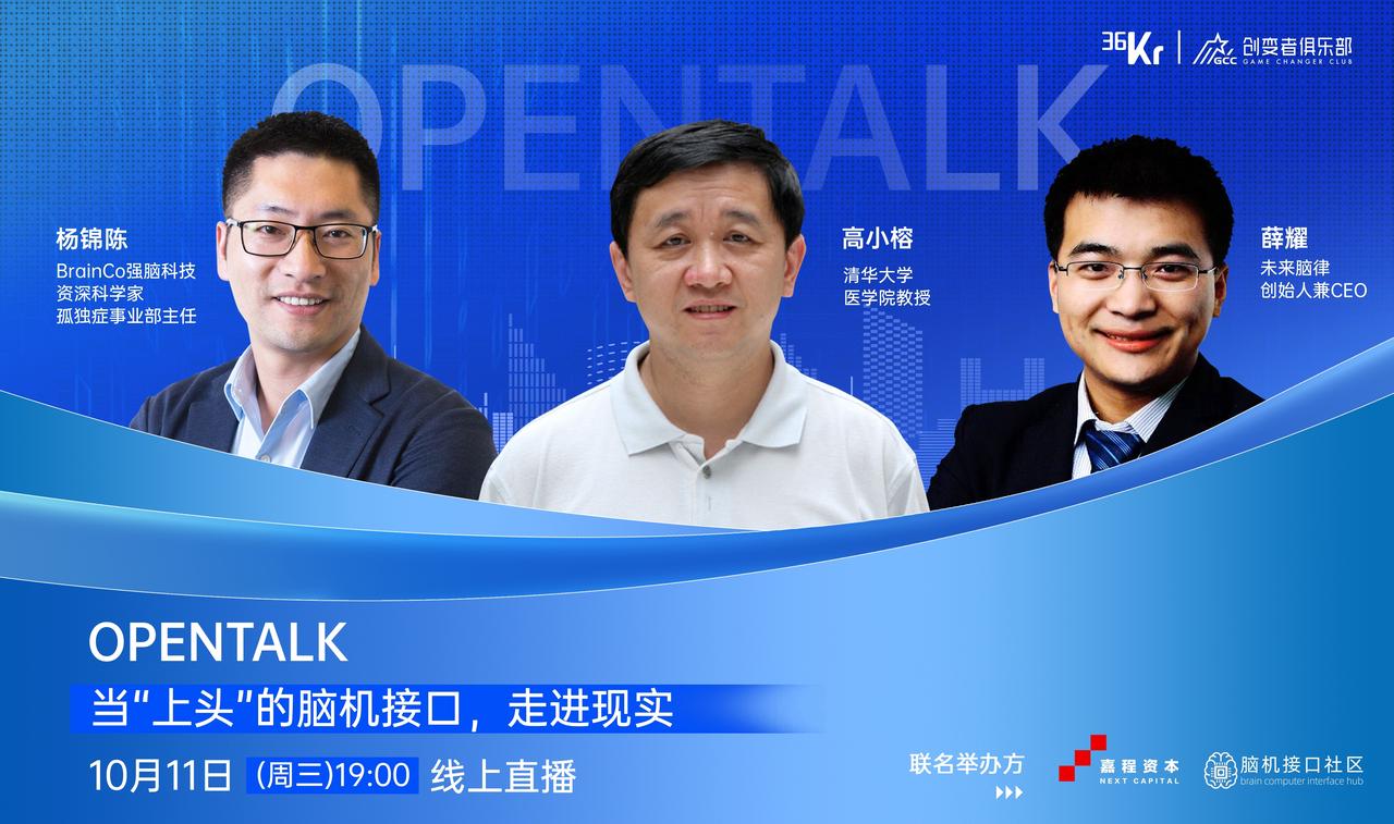 2023年10月11日,36氪举办了《当“上头”的脑机接口,走进现实》OpenTalk线上直播,清华大学医学院教授高小榕,BrainCo强脑科技资深科学家、孤独症事业部主任杨锦陈,未来脑律创始人兼CEO薛耀三位嘉宾做客直播间,从脑机接口技术的发展沿革、研究现状、应用场景、商业化方向及未来趋势等多维度展开分享,并与观众进行了现场Q&A互动。以下是本场直播干货的精彩回顾: