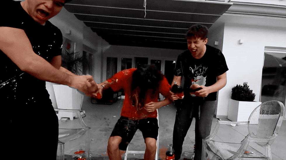 Kwebbelkop 正在挑战在嘴里同时含着曼妥思和可乐