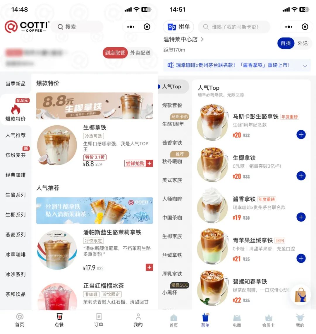 库迪咖啡&瑞幸咖啡 点单小程序价格
