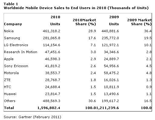 手机行业近10年的霸主,毫无疑问是苹果。但是,满打满算,智能手机普及的时间不过十余年,在此之前仍有一段漫长的功能机时光。或许,现在的人们,对十几年前的手机市场格局已无太多记忆。小雷找到了一份2010年全球手机出货量数据,报告来自市场研究机构Gartner。