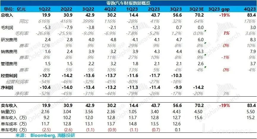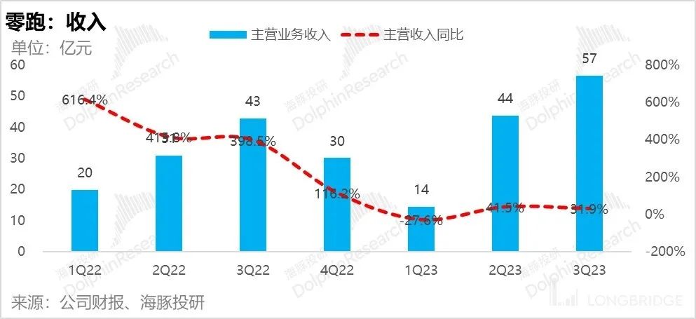 三季度零跑总收入是 56.6 亿, 同比增长 32%,但低于市场预期的 83.4 亿,主要源于单车收入大幅低于预期。