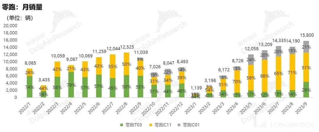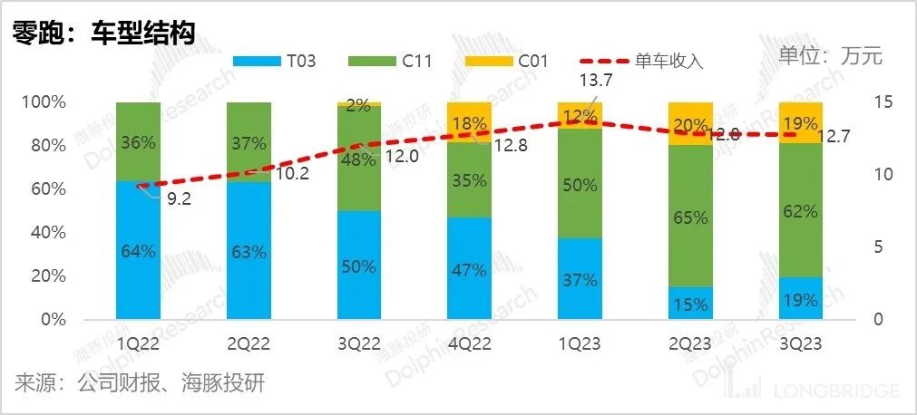 虽然单车收入环比下行,但同比增长了 6%,主要来源于 C 系列的热卖,定价在 15-21 万的 C 系列销售占比已经从去年三季度 50% 上行至本季度 80.5%,反映了零跑已经成功将产品从 T 系列过渡到 C 系列。