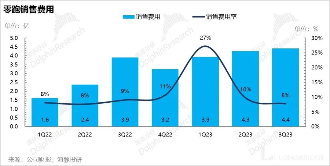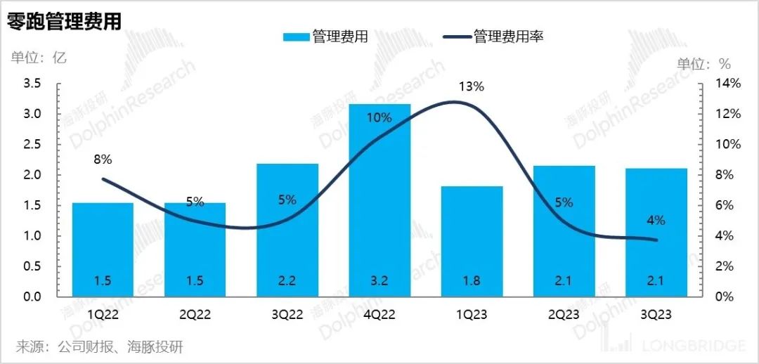 本季度经营费用上,零跑销量的提升带来了杠杆效应释放,经营费用率从上季度 24% 下降到本季度 20%。