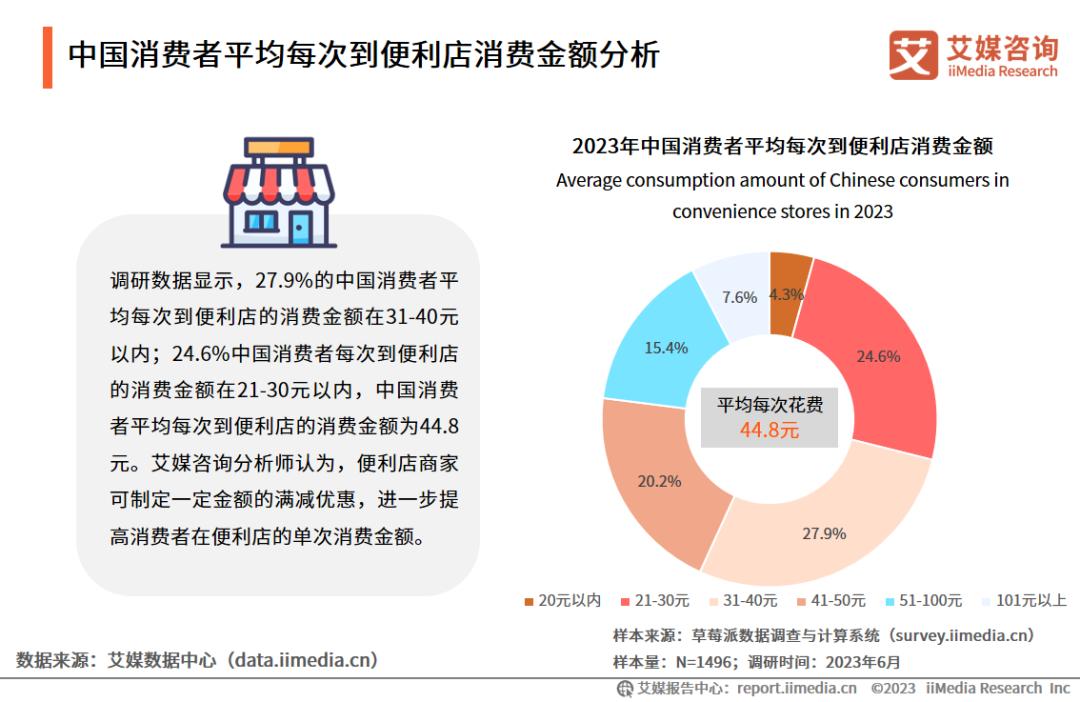 再从消费端来看,“年轻化”成为便利店高频消费者群体的标签,要在一定程度满足他们多时段、多场景的需求。根据艾媒咨询数据显示,2023年中国消费者平均每次到便利店消费金额为44.8元。
