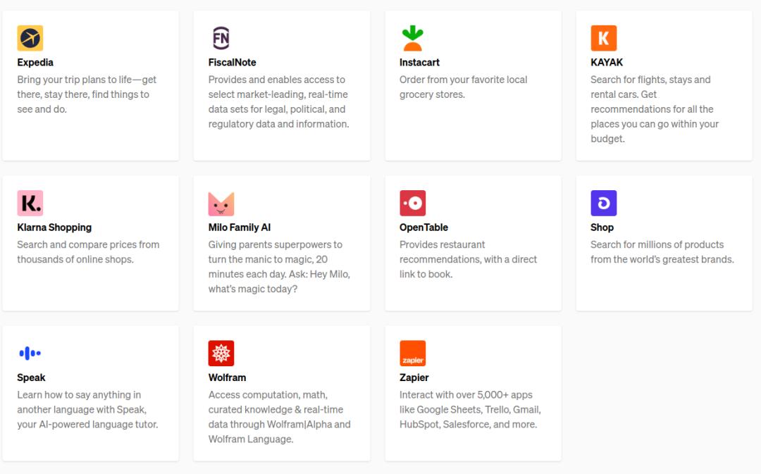 于是,很多大模型都在打造自己的“应用中心”。OpenAI上线了ChatGPT插件,付费用户可以调用插件解决某类需求,目前ChatGPT上已经有近1000个插件;国内的百度也在积极布局,发布文心一言插件生态平台“灵境矩阵”,并计划提供百亿流量、亿元基金等激励来扶持插件生态。