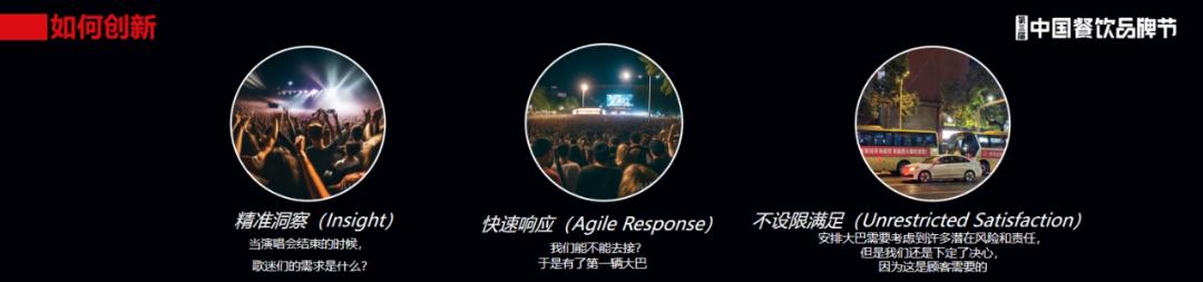 这种情况下,我们说演唱会的场景能不能去做呢?锁定了顾客的需求,做的时候能不能快速响应呢?对海底捞来说,其实挺难的。有演唱会这个需求,要派一个大巴去演唱会区接送这件事,在海底捞内部要通过是比较难的,比如派大巴,万一出了车祸怎么办?我们要承担责任,店经理会说这确实不能干,风险太大了,于是就没法干了。