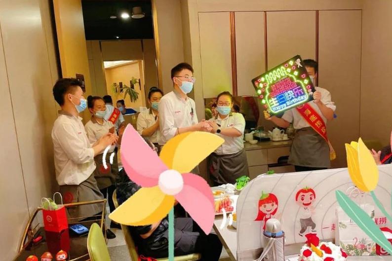 再比如冰封玫瑰,4月份有一个员工想到了做冰封玫瑰,然后火了,之后其他店纷纷模仿。8月份的时候,我把她找出来了,给她发了一个二级勋章。还有海底捞的露营店,露营店是上海、武汉区域自己创新的,那会“露营经济”大火,就不断打磨,探索露营场景。