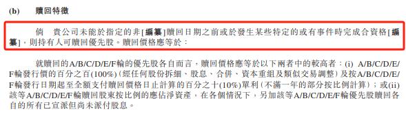 但假如KK集团上市不成功会怎么样?根据协议约定,如果KK集团未能于指定的赎回日期之前上市,则持有人可赎回优先股。就赎回的A/B/C/D/E/F轮的优先股各自而言,赎回价格应等于以下两者中的较高者:一是A/B/C/D/E/ F轮发行价及10%单利;二是赎回股东按比例的应占净资产,加上已宣派但尚未派付股息。