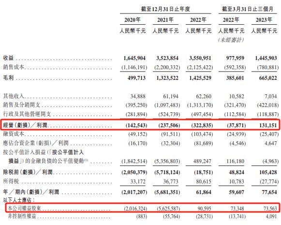 除了对资产负债表产生影响外,可转换可赎回优先股等金融负债还对KK集团的利润表产生巨大的影响。比如2021年和2022年,KK集团按公平值计入损益的金融负债的公平值变动分别为亏损54亿元及收益4.89亿万元。
