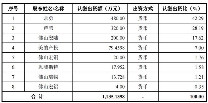 宏石激光的实控人是常勇、芦苇夫妻俩,二人均是大专学历,合计控股76.92%。而美的旗下的投资公司也在去年出资3.38亿元,占比7%,成为公司第4大股东。