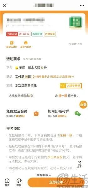 这也是为什么这种外卖“霸王餐”的推广不同于此前微信公众号上的外卖券那样公开化,而是通过私域的人际传播,要有人拉你进群、然后才能使用。外卖商家宁愿选择处于灰色地带的“霸王餐”来作为营销手段,也不愿意使用美团、饿了么的推广,其实从某种意义上来说,也就意味着美团和饿了么目前面向商家的推广体系出现了失效的情况,逼得商家不得不借助灰色途径来完成店铺的冷启动。