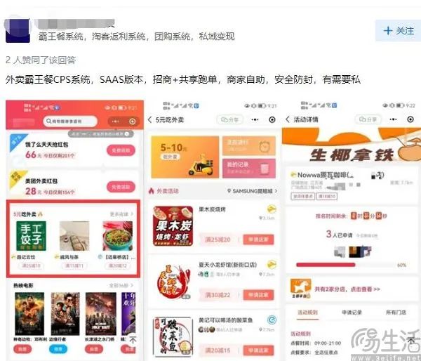 在相关帖子里,“满35减32”、“满22减19”等高额优惠券,又或者是“满30元返20元”这样超高比例的返利可谓是层出不穷,更妙的是,这样的优惠措施似乎并非虚假宣传,而是实实在在能够被消费者享受到的。需要注意的是,这与两年前曾一度风靡的“1元点外卖”、“66元外卖红包每天领”完全不同,后者是饿了么推广和美团联盟这两大CPS平台昙花一现的结果,而近期出现的“霸王餐”则并非出自美团和饿了么之手。