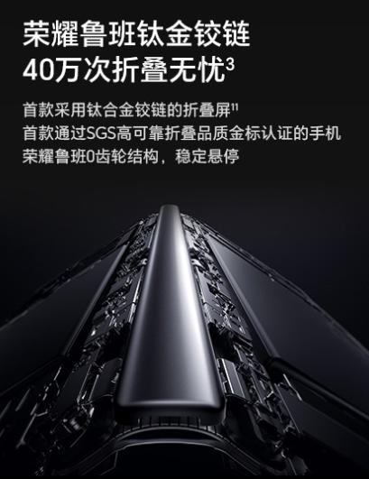 为了达到堪比直板旗舰的轻薄程度,荣耀Magic V2系列在架构、材料、器件、模组等领域全面重构,创新将各零部件进行轻薄定制化。同时采用了新一代自研铰链组件——鲁班钛金铰链,保证了铰链的强度。铰链的轴盖部分首次采用钛合金3D打印工艺,宽度相较于铝合金材质降低27%,强度却提升150%,全新完美的平衡了轻薄与可靠性。为了进一步的轻薄,荣耀还特别定制了0.22mm超薄散热VC、Type-C接口模块等,进一步压缩了折叠屏的内部空间。