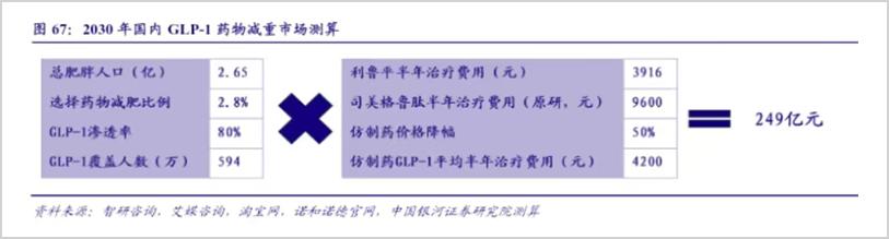 智研咨询的预测数据显示,2030年中国超重和肥胖人群将达到2.65亿人,潜在的使用GLP-1减肥药的人群有望达到600万人左右,届时中国GLP-1减肥药市场规模将有望达到249亿元。