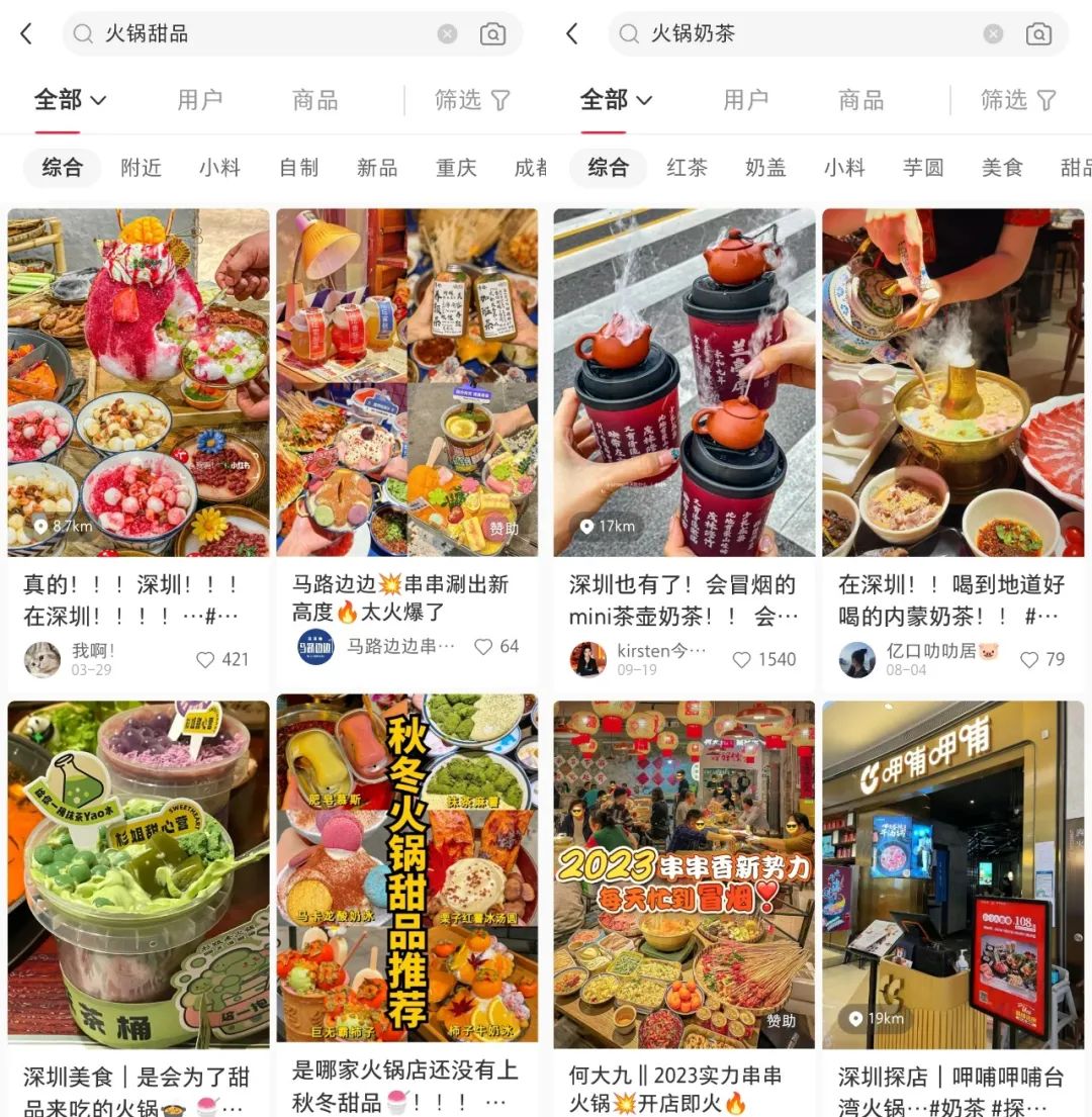 小红书搜索“火锅甜品”,显示有49万+篇笔记;搜索“火锅奶茶”,显示有51万+篇笔记。抖音平台上,“火锅甜品”相关的话题总播放量超过1亿次……火锅店里,卖起了甜品和奶茶,甚至,有些火锅将甜品奶茶做成了特色。而这却正反映出火锅产品壁垒薄弱的痛点。