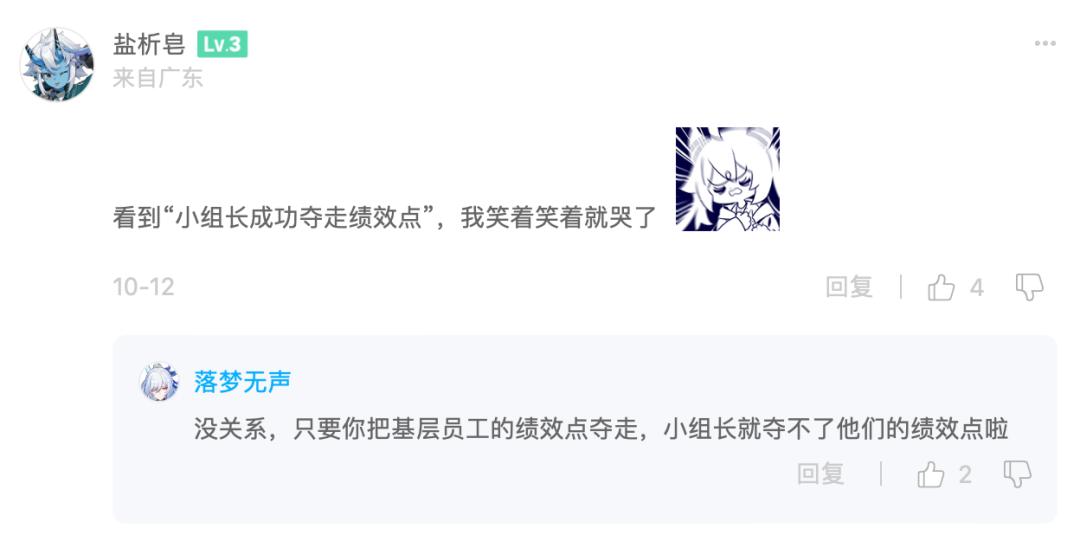 但《崩铁》却让不少玩家看到了现实中职场的影子——基层员工不就是我自己吗,多少人面临资深员工的技能组合拳暴击:企业文化冲击、处分、降本增效、培训中、720度考核、团建。