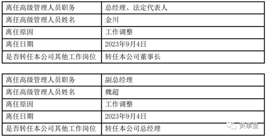 他于今年9月离任公司总经理,但嘉合基金的公告也明确写出,金川转任公司董事长,由该公司原副总经理魏超转任公司总经理职务。