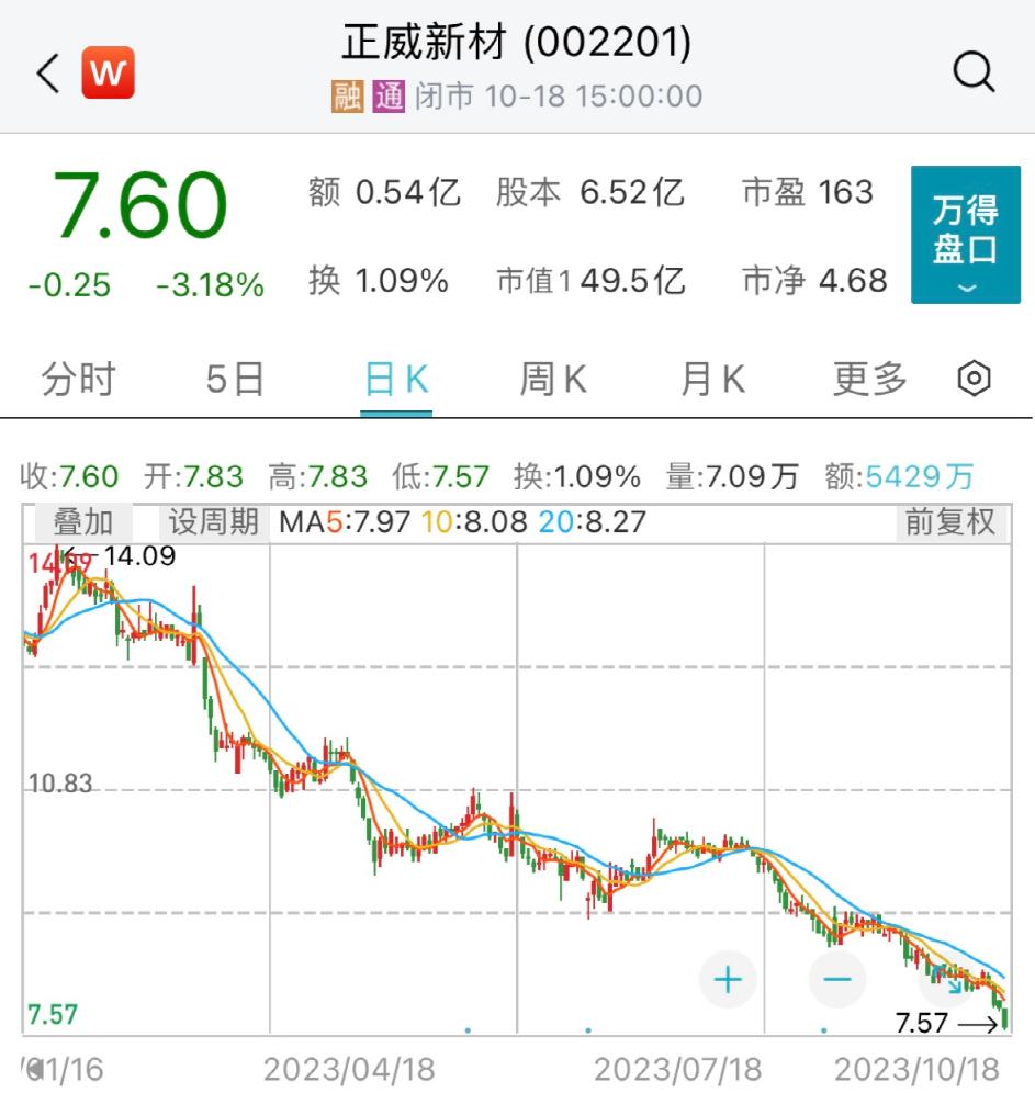 从股价表现来看,正威新材的年内股价已经跌超40%,截至目前,该股报7.6元,总市值为49.5亿元。