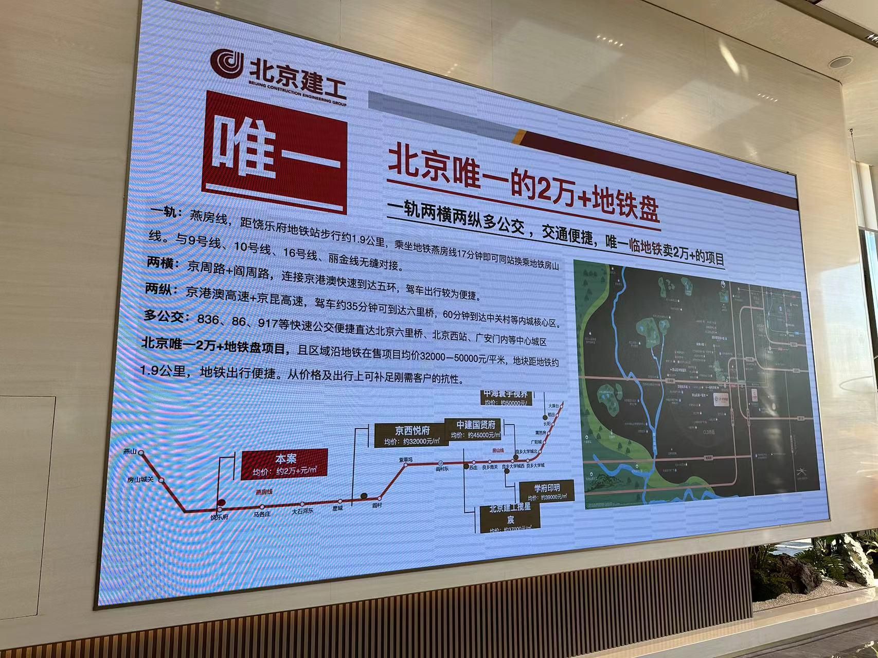 燕房线-房山线沿线的新房售价,由西向东递增,距离市区越近,价格越贵。建工·揽星樾的指导价为2.7万每平方米。阎村站的京西悦府均价3.2万,苏庄站的中建国贤府均价4.5万,长阳站的中海寰宇视界均价5万。