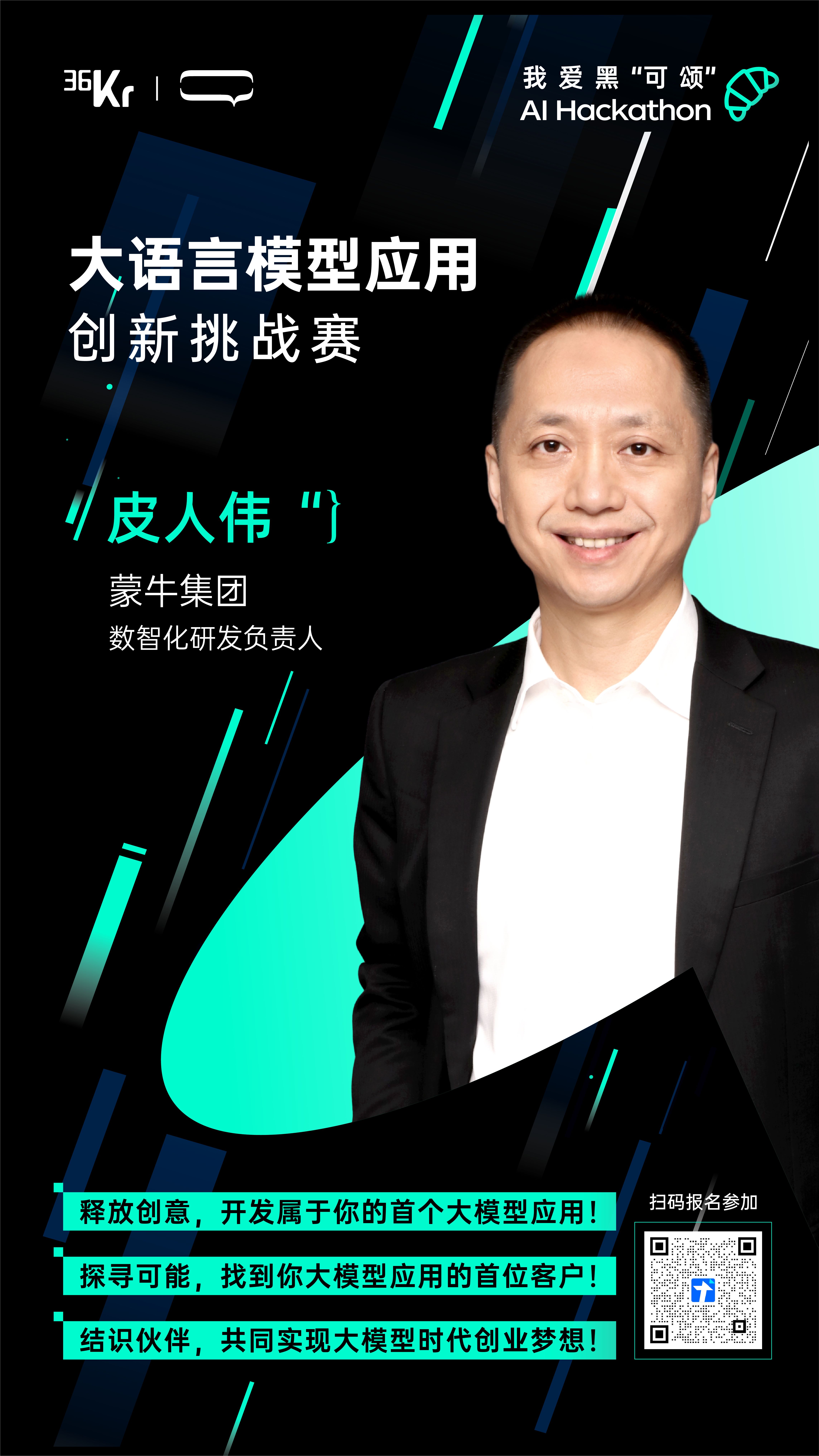 欢迎蒙牛集团数智化研发负责人皮人伟加入我爱黑“可颂”大语言模型应用创新挑战赛评委阵容