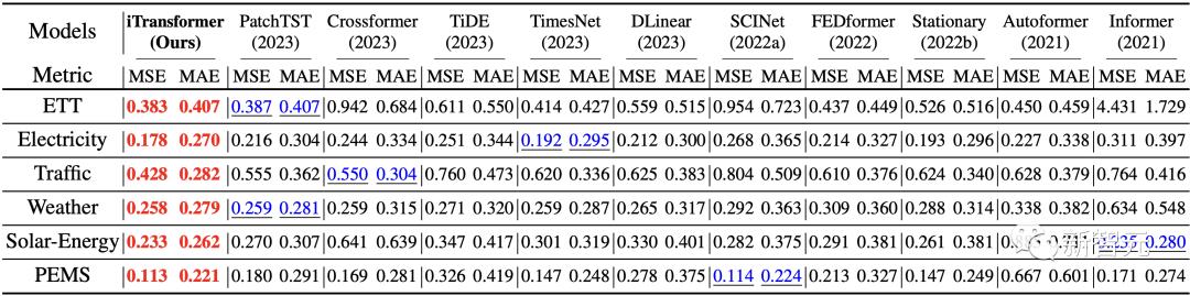 在iTransformer的加持下,Transformer完成了在时序预测任务上的全面反超。