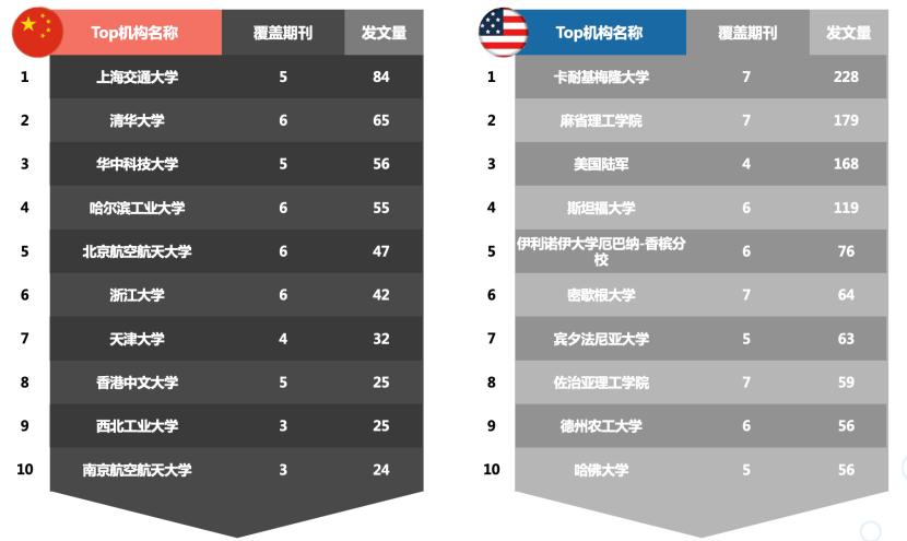 中美机器人学科Top机构: