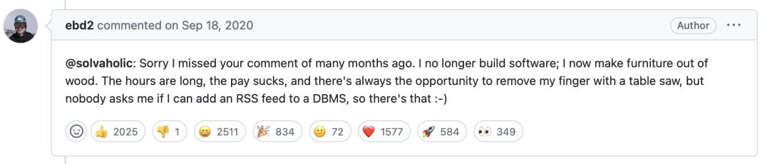 一名程序员因职业倦怠而崩溃:https://github.com/docker/cli/issues/267#issuecomment-695149477