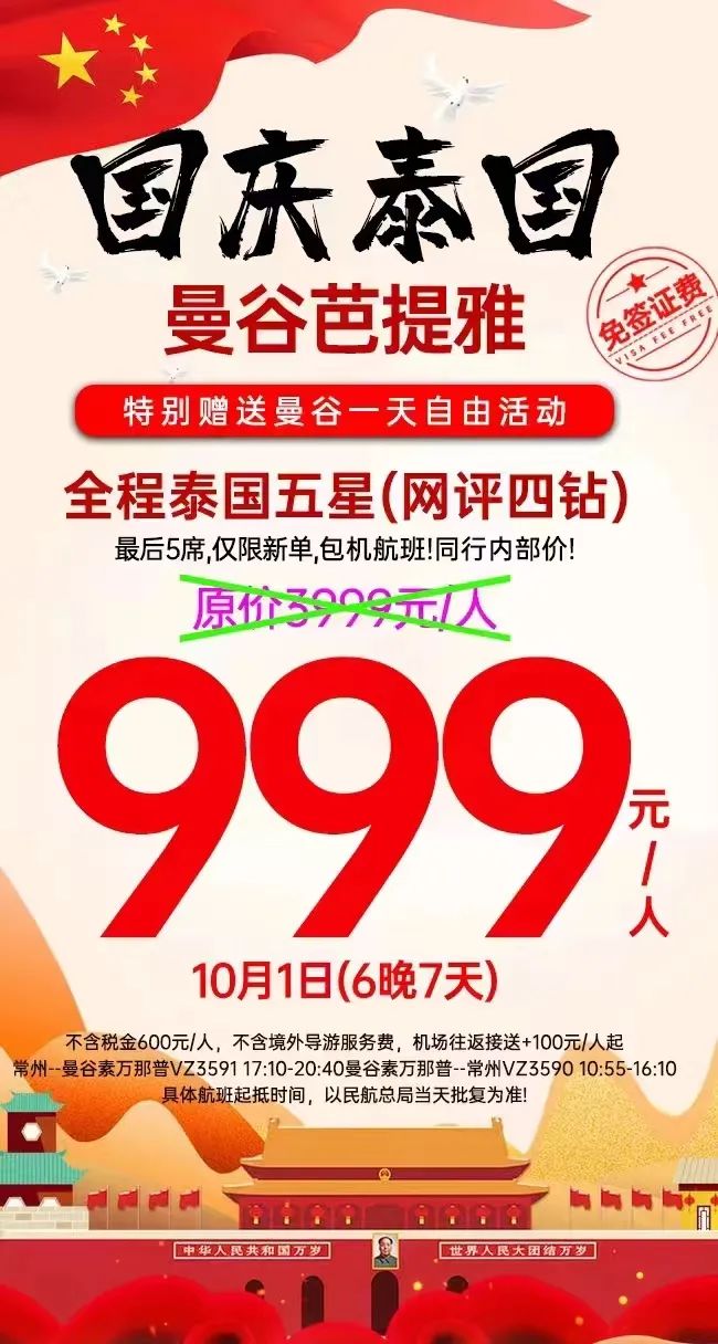 在曼谷枪击事件前,国内东南亚旅游同业已经纷纷表示今年国庆泰国收客不理想,有同业晒出今年10月1日出发的曼谷芭堤雅6晚/7天仅售999元。