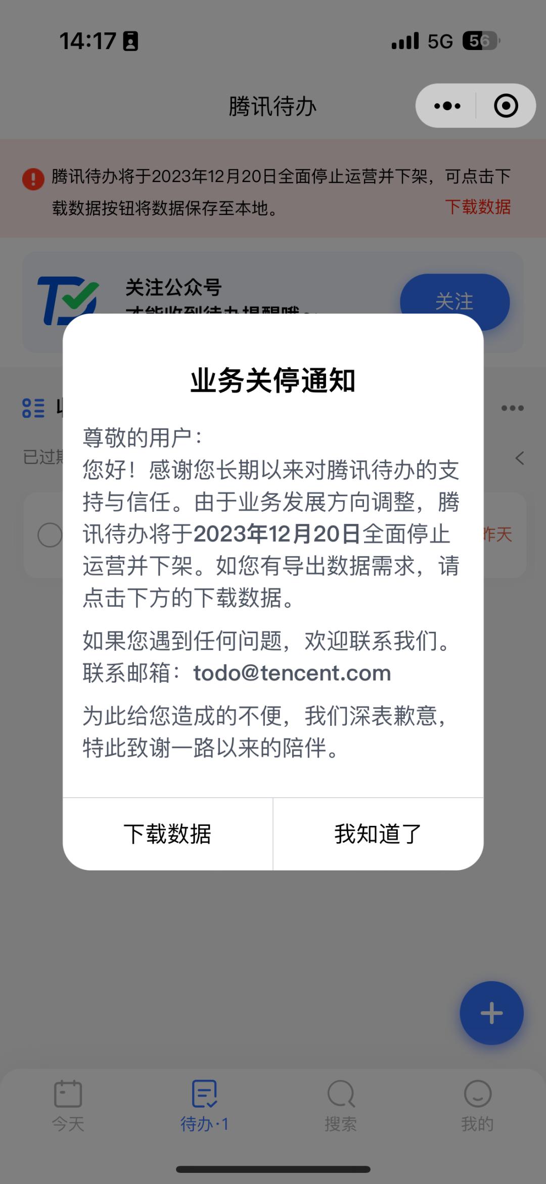 最近,腾讯宣布了下架了一款产品,名字叫做腾讯待办。