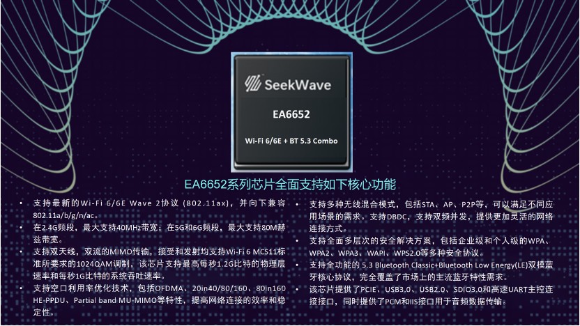 Wi-Fi6/6E+BT5.3 Combo - EA6652系列芯片产品性能一览: