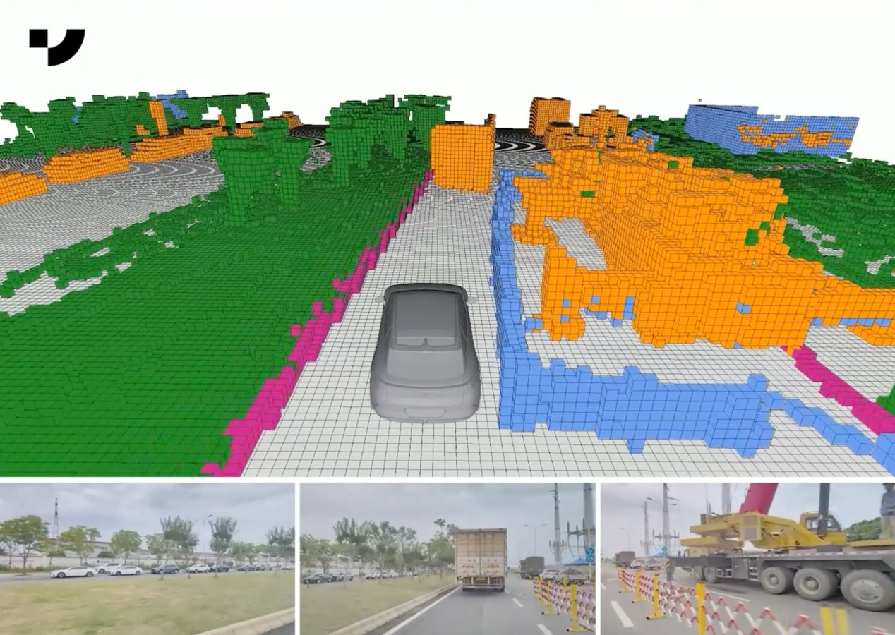 在极越近日发布的占用网络技术演示视频中,占用网络技术能实时重建还原3D场景。极越01的感知系统用体素清晰展示了栏杆、绿植、路障等标准障碍物,还识别出了施工中的工程车、树木中的路灯等异形障碍物。