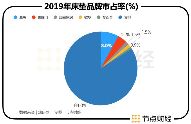 具体而言,床垫产品的技术门槛并不高,加之其主要原材料(弹簧、乳胶等)均来自外部采购,导致产品同质化十分严重,最终使得市场格局十分分散——20219年我国床垫前五家品牌的合计市占率不到16%。