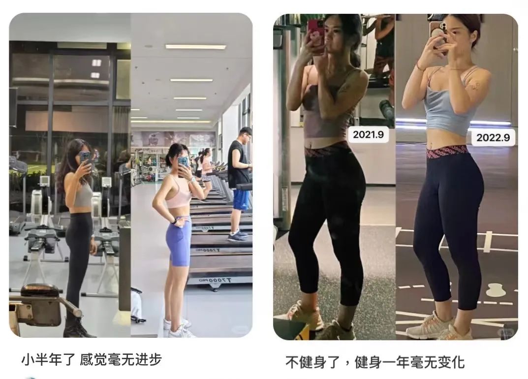 而真正让她心态崩坏的事件是,健身搭子在朋友圈晒出一张身材逆袭照,「对比之下感觉自己就是个健身房混子。」