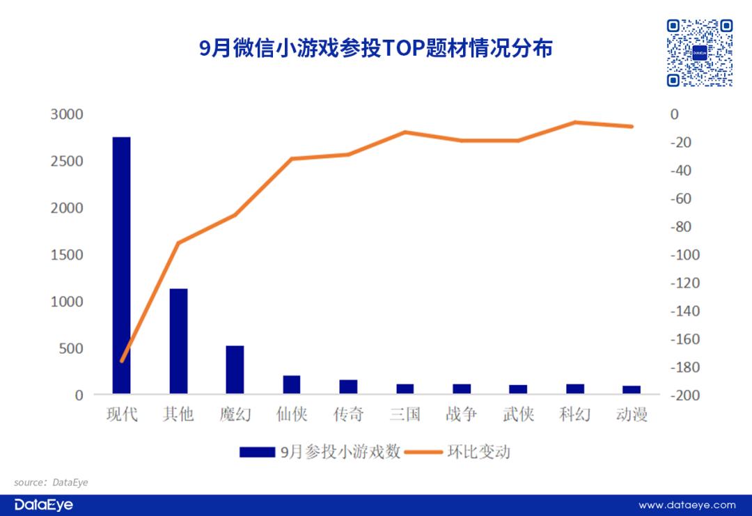 ADX数据显示,进入9月,中重度题材的参投游戏数,都出现了不同程度的减少,其中相对轻度休闲的现代题材游戏数减少明显,大约减少了170款游戏。而仙侠、传奇、三国等国内热门中度题材游戏的投放数量也有减少,依次分别是32、29、13款。