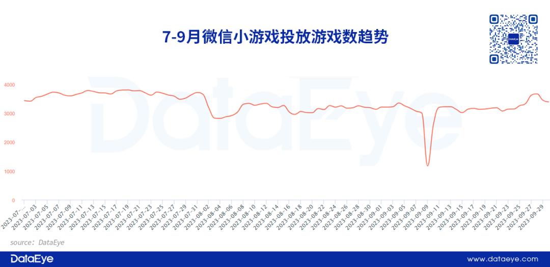 参投游戏方面,进入9月日均在投微信小游戏约3200款,基本与8月在投游戏数持平。国内微信小游戏市场进入相对稳定的状态,投放活跃。