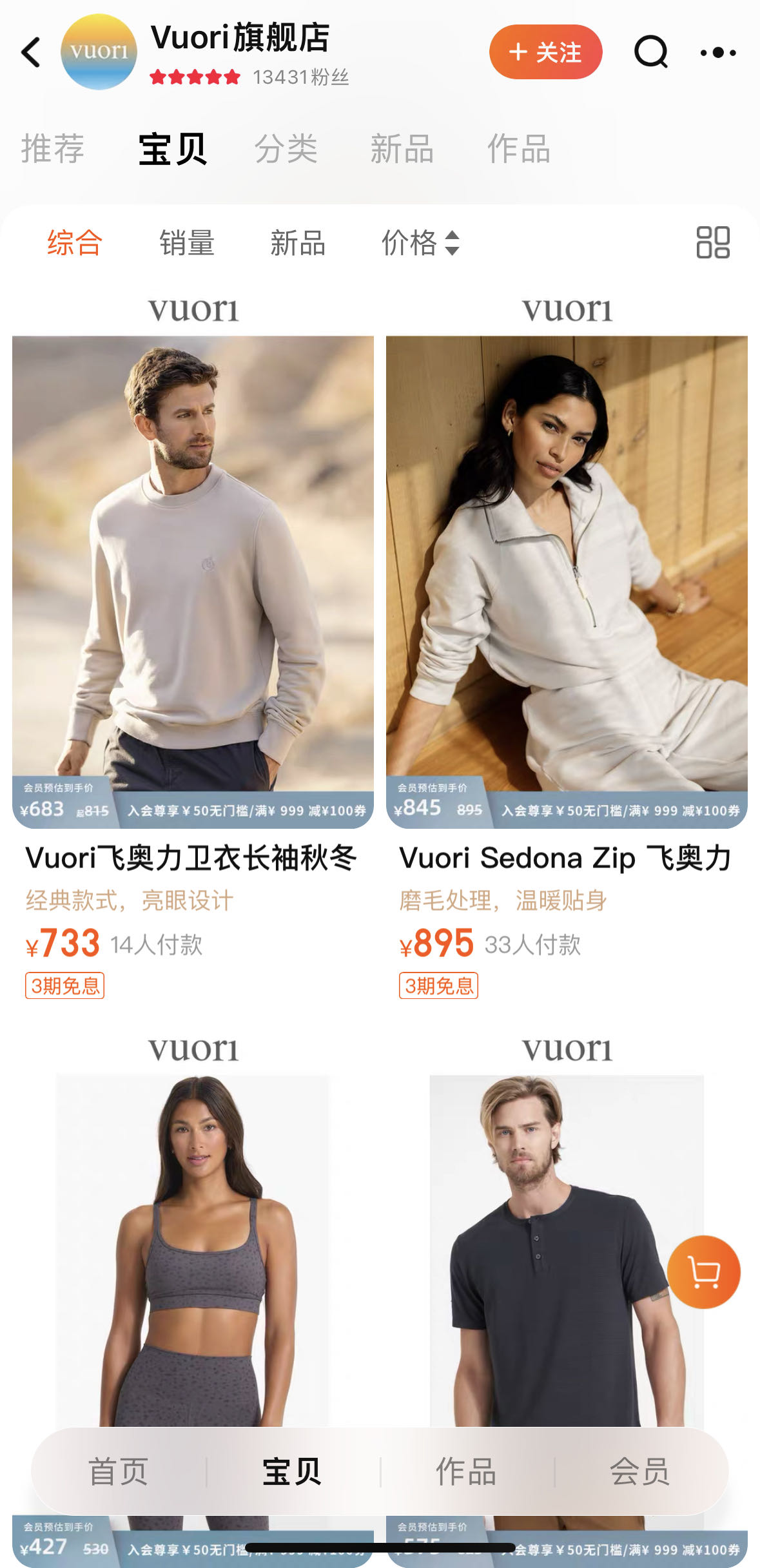 既然很难让男性穿上瑜伽裤,品牌需要做出平衡,适当增加适合女性用户的产品。例如,虽然从产品数量上看仍以男性用户为主,但Vuori显然也注意到了中国市场的特殊性。无论在Vuori的天猫旗舰店里,还是在线下首店,品牌都没有刻意强调“男性专属”,而是将产品分成男士专区和女士专区。