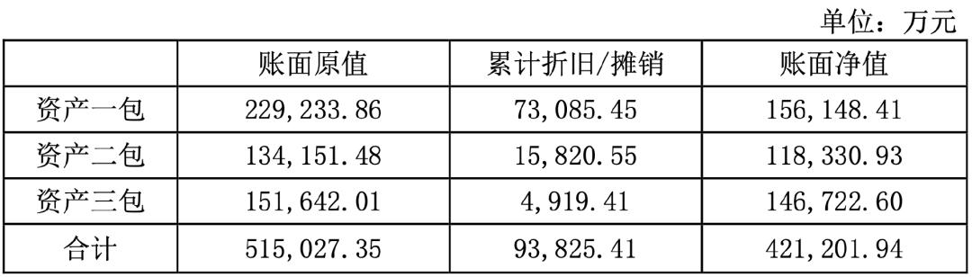 涉及包括 乘用车公司三工厂存货等在内的三个资产包,拟转让资产账面净值约 42.12亿元,拟转让资产评估价值约44.98亿元,增值额约2.86亿元,增值率为6.79%。