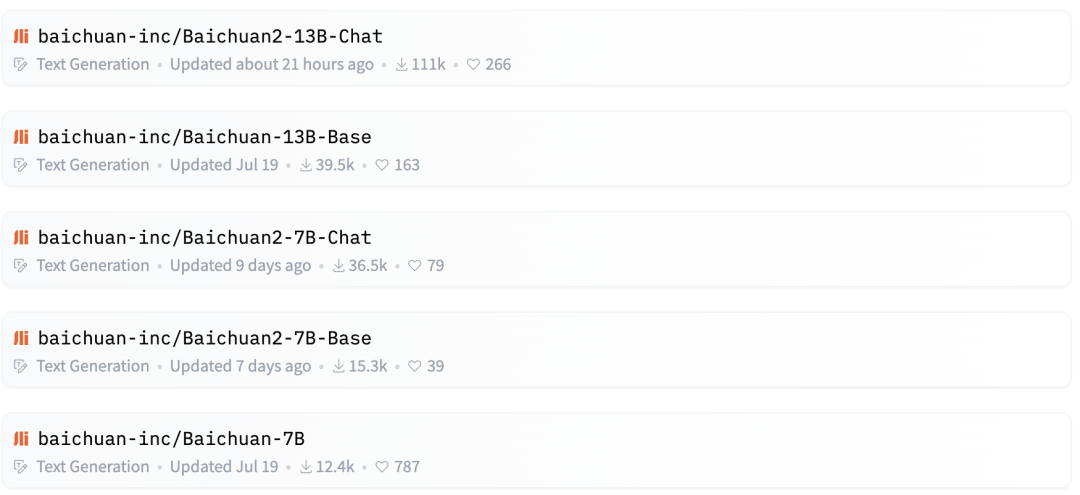 光锥智能发现,百川智能系列模型在Hugging Face开源社区的最高下载量有11万多,在中外开源大模型中仍具有竞争力。