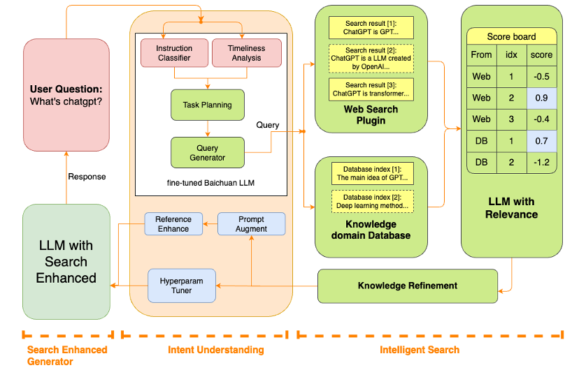 在提升数据质量上,百川智能的核心思路是“始终取优”,以低质、优质为标准将数据进行分类,确保Baichuan2-53B始终使用优质数据进行预训练;在信息获取方面,Baichuan2-53B对多个模块进行了升级,包括指令意图理解、智能搜索和结果增强等关键组件,通过深入理解用户指令,精确驱动查询词的搜索,最终结合大语言模型技术,优化模型结果生成的可靠性。