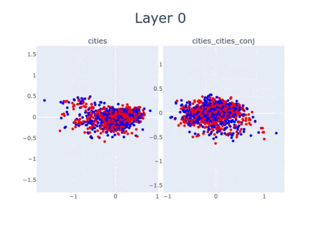 第0层时,「芝加哥在马达加斯加」和「北京在中国」这两句话还混在一起。
