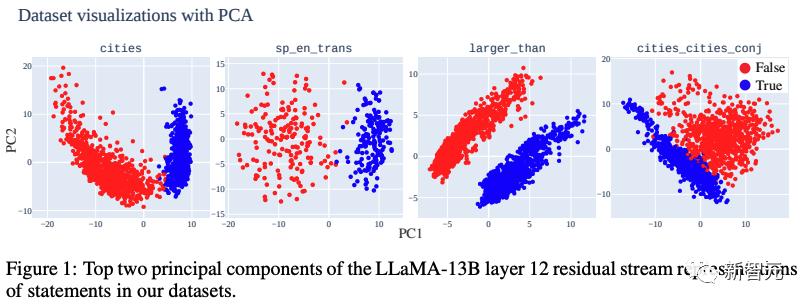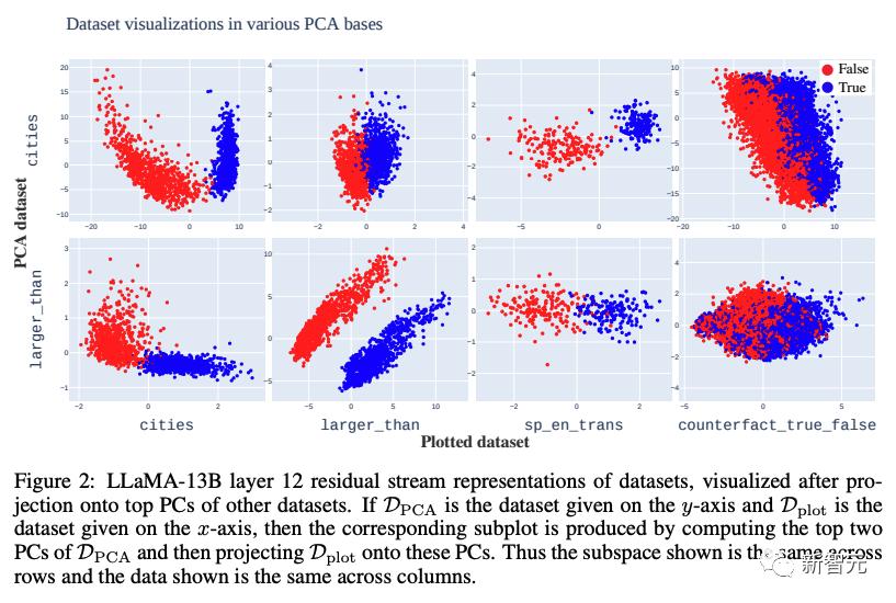 研究人员从一种简单的技术开始他们的测试:使用主要成分分析(Principal Component analysis,PCA)可视化他们的数据集在LLaMA-13B模型中的表征。