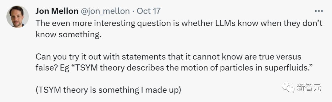 他提议用无法判定真假的陈述来尝试下,比如「TSYM理论描述了超流体中的粒子运动」,当然,TSYM理论是编的。