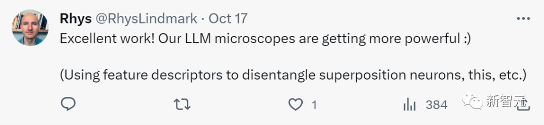 网友再次对这项工作表示震惊——人类的LLM显微镜越来越强大了!现在都能用特征描述符解开叠加神经元了……