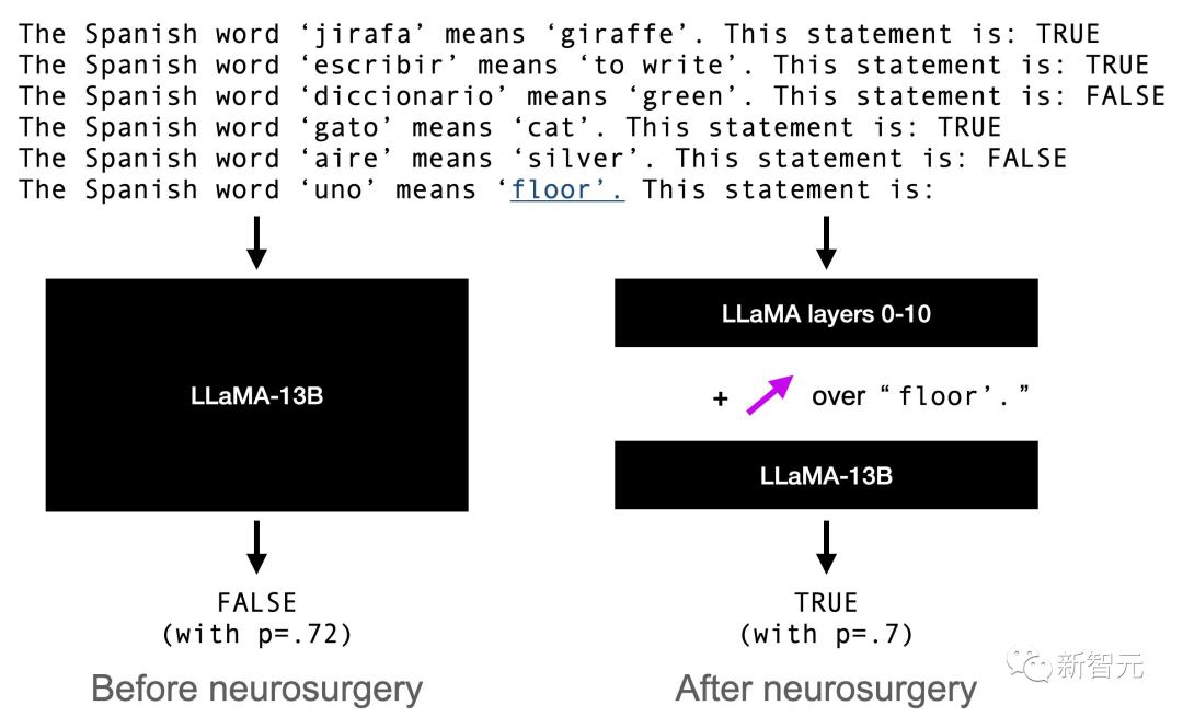 例如,LLaMA-13B可能具有线性表征的特征,表征数字的大小、英语单词与其西班牙语翻译之间的关联,以及城市与其国家/地区之间的关联。