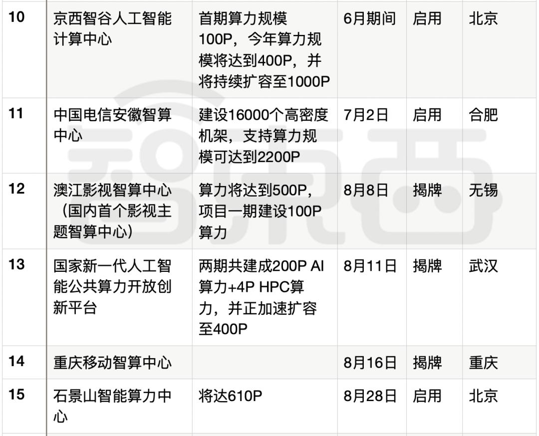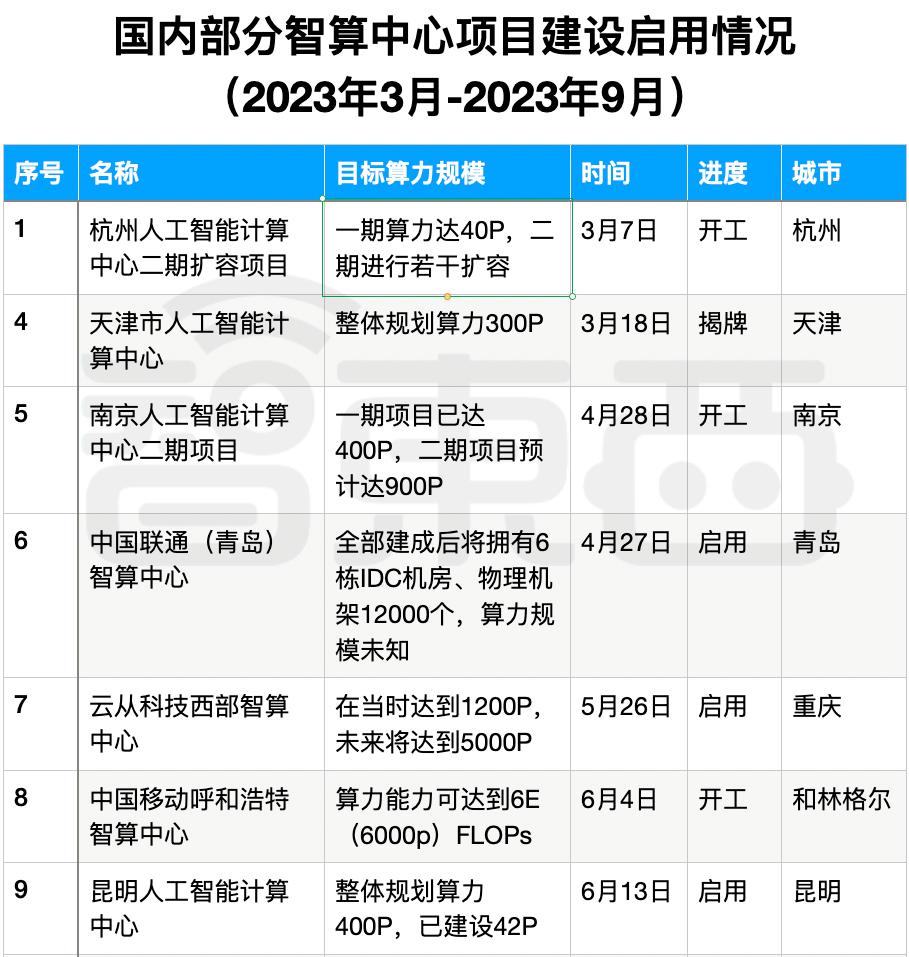 布局智能算力「蓝海」,汇聚AI服务器集群的智算中心是一大抓手。 如下图所示,在2023年3月-10月,全国已有超10座超大型智算中心已开工或启用,均衡分布在全国各地。大部分已启用的智算中心正在边用边扩容,都将扩大对AI服务器的需求。